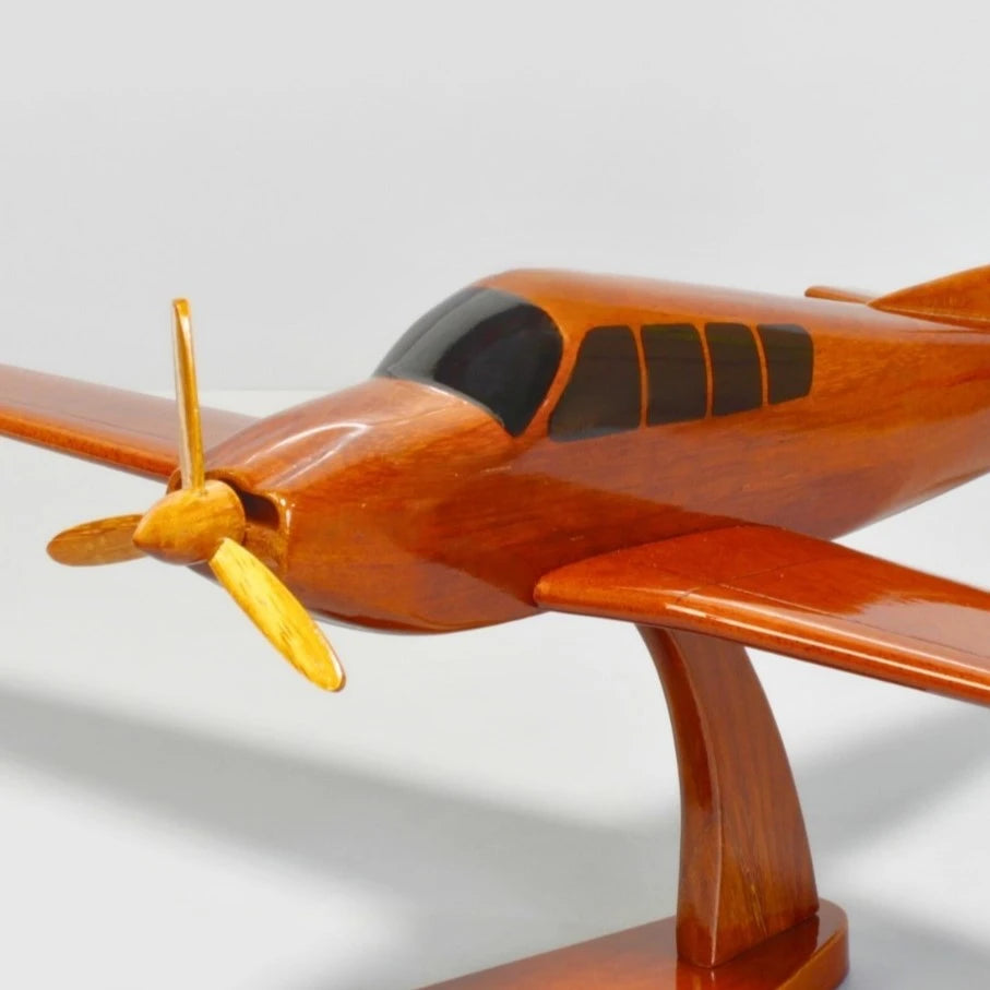 Celebrate the golden age of general aviation with this handcrafted Beechcraft Bonanza Straight Tail wood model – a classic aircraft immortalized in mahogany.