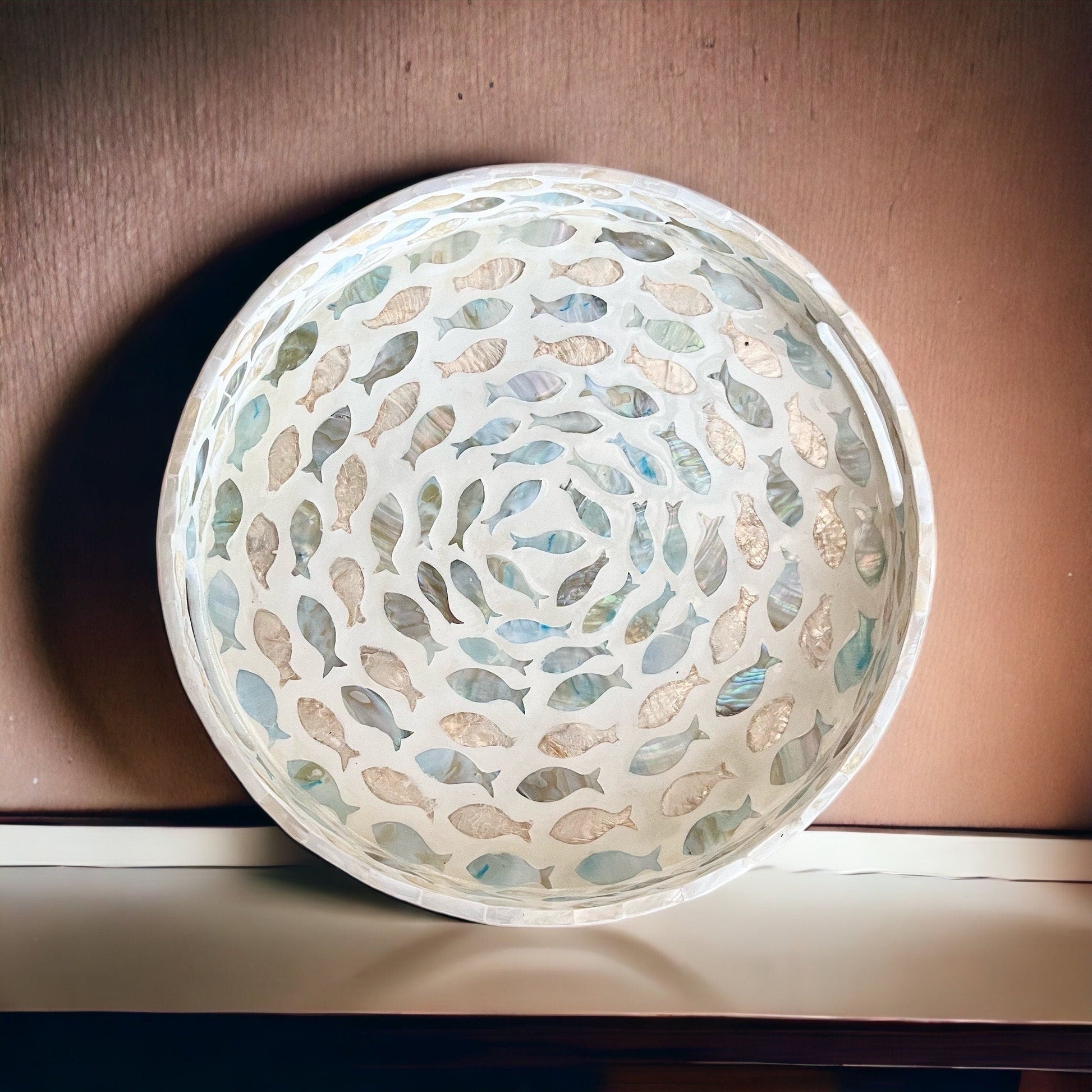Mother of Pearl Inlay Serving Tray, Fish Tornado Swirls Pattern