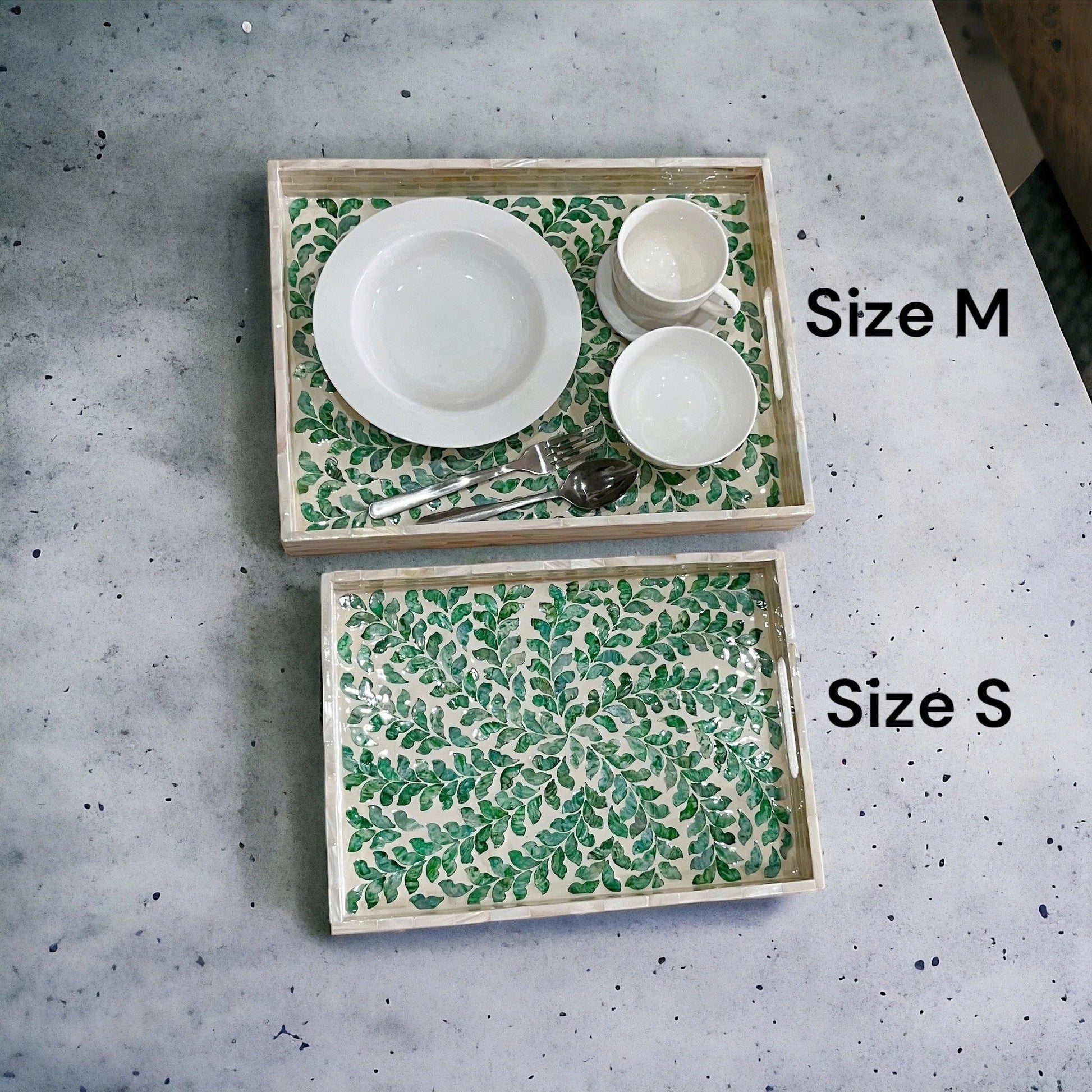 Mother of Pearl Rectangular Serving Tray, Green Leaves Pattern