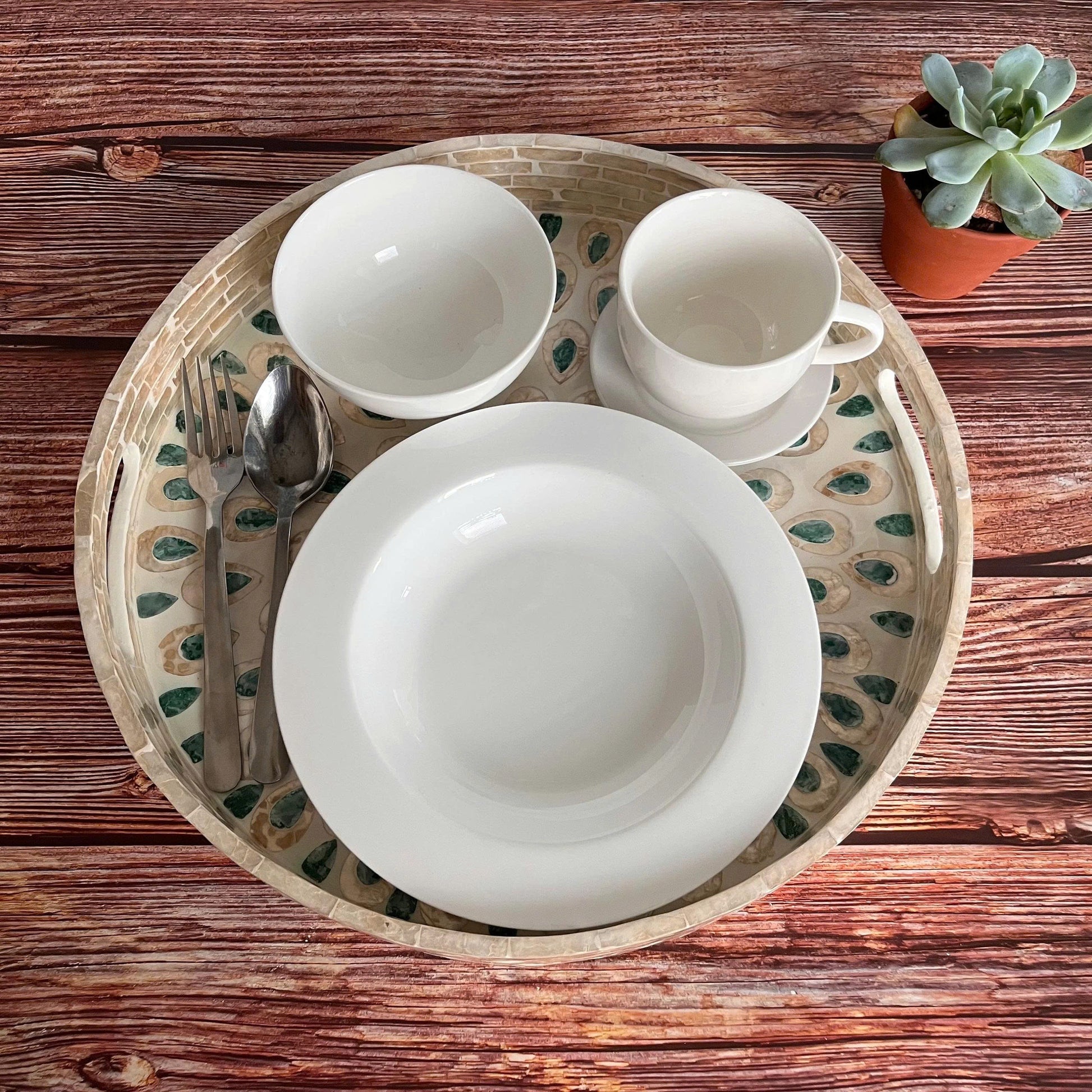 Handmade Capiz Shell Round Tray with Handle – Elegant & Radiant